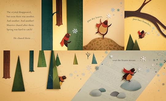Maurice is a little bear who is intent on finding Spring instead of hiberhating. He thinks he finds it and he wraps it up in a scarf. But it is really Spring?