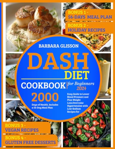 Dash Diet Cookbook for Beginners 2024:Easy Guide to Lower Blood Pressure and Plan Weight Loss.Overcome Hypertension with Low-Sodium Recipes for 2000 Days of Health. Includes a 56-Day Meal Plan