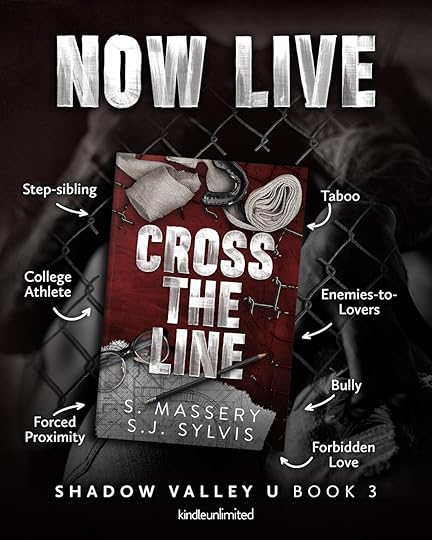 This book absolutely consumed me. Cross the Line is the third installment in the Shadow Valley U series and S.J. Sylvis and S.Massery has outdone themselves. Even though you can read this as a standalone I suggest reading the previous books just because... Please check your trigger warnings before diving in because this one gets heavy. The premise immediately hooked me. Scarlett arrives at her father’s wedding and discovers she has a stepbrother. It sets the tone for a relationship built on shock and forbidden tension. We jump forward six months to find Cross struggling. He is fighting underground, failing classes, and risking his scholarship. When he moves in with Scarlett the forced proximity trope is executed perfectly. Scarlett is such a strong FMC. She arrives at Shadow Valley U looking for a fresh start but gets pulled into Cross's messy life. I loved the tutor and athlete dynamic here but it is so much darker than your average college romance. Cross tries to hate her. He tries to ignore her. But his need for her ruins everything else. The conflict comes to a head when Cross's involvement with a bad crowd puts Scarlett in the crossfire. The blackmail element added a layer of suspense that kept me turning pages late into the night. It is angsty and raw and the chemistry between them is electric. If you love tropes like enemies to lovers, forbidden love, and taboo romance with a heavy dose of angst this is for you. Big thanks to S.J. Sylvis, S. Massery, and Valentine PR for the ARC.