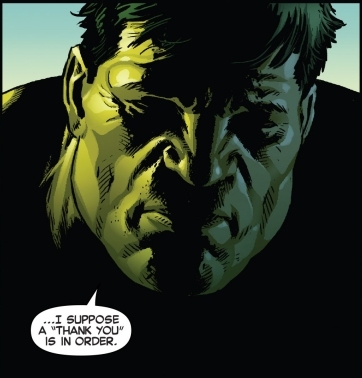 So right off the bat I'm not feeling it. I will pretty much always be against these type of revisionist history stories, where we go back and learn that everything that has been established is a lie. It is cheap and pretty much a slap in the face to loyal comic fans, in my opinion. It is especially heinous in this instance as Hulk's origin is pretty much a sacred staple of comic history. However, a terrible plot isn't the only drawback you have to look forward to if you decide to dive into this train wreck. The writing itself, most noticeably the dialogue, is painful. It is uncharacteristic, cheesy, forced, and awkward.