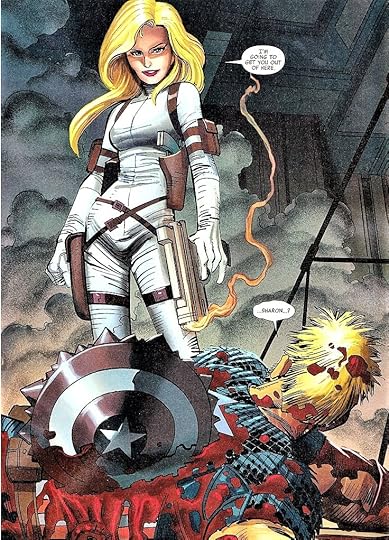 In the final pages, we are introduced to the Cap relaunch, where he gets a new number one and a fresh stylistic approach. It is also where the wheels begin to fall off. Brubaker's run on Cap has embraced pulp sensibilities of mad German scientists, sci-fi trimmings, and righteous fisticuffs, but here the mix feels like it's been tampered with. The wackiness of it all seems more pungent, the madness more flagrant, and the entire mix less cohesive. No longer are the stories more than the sum of their parts. The parts--particularly the defective ones--are more visible than ever. This is made more pronounced by a marked shift in the drawing style--darker inks are all but banished for bright, splashy colours. Some of the inks are reintroduced via Mark Bagley, who is a fantastic artist, but who doesn't feel like a natural match for Cap and his cohorts--the pencils are fine but the character and style don't feel like a natural marriage.