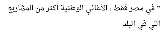 _____________________________ .....لأنك مصري محدش هيسألك أنت ليه تخين ودمك خفيف ، لأن اللي بنا مصر كان في الأصل حلواني :( :( :( _____________________________ خبر فتوي برهامي تؤكد إن البوس مش زنا * يعني اتفرج علي فيلم قبلات مسروقة عادي يا مولانا ؟ - _____________________________ المثل بقول إن كبر إبنك خاويه * يعني أحضر له جن مثلا ًولا أعمل إيه - _____________________________ إلي كل اللي كان عايز يخش كلية طب ونقص نص درجة ودخل طب بيطري .. شد حيلك ؟؟؟ _____________________________ الزوجة زي العربية 128 ..لو أهملتها ..ممكن تعملها معاك*
