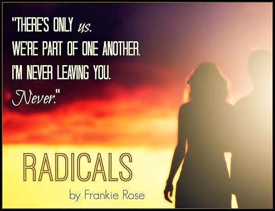 A fulfilling, action packed, and suspenseful sequel to Halo. Frankie Rose never disappoints. The way she weaves together a world with characters that turn you from cold to hot, to cold to sizzling again makes the story stay with you long after you finish the last page. Radicals does not stray from this and leaves you trying to catch your breath from all the actions flung at you.