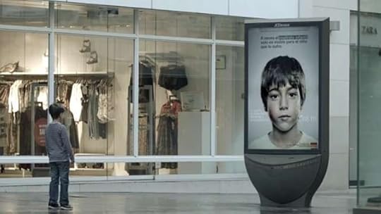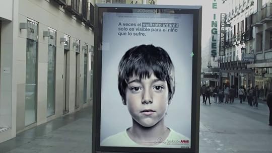 هذا الإعلان السويسري لايراه سوى الطفل المعنف وعلى مستوى طولي معين تتضح الكدمات وأرقام التبليغ .. "الشاشة نفسها ولكن تختلف الرؤية لاختلاف صفات معينة في الشخص نفسه!."