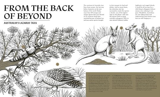 Read all about a habitat (and the animals and plant life within it), then turn the page to reveal a Lazarus creature that has been found there and the fascinating story behind its discovery. What's more, you'll find compendium spreads dotted throughout the book that give a snapshot into even more of these creatures that have defied the odds to survive.