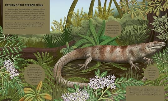 I think this book, with its gorgeous artwork...I want the terror skink one for my wall!...its challenging vocabulary, and its glossary for instilling the habit of research is ideally suited to making that positive attitude honestly, demonstrably supported by facts, available to the vulnerable.