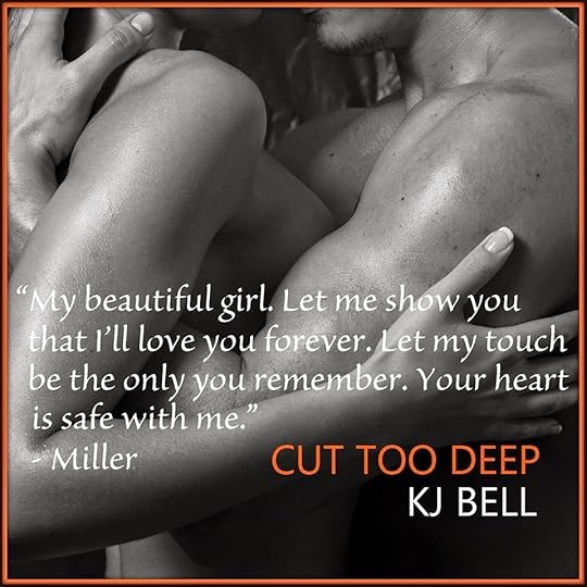 I adore the characters KJ Bell creates and the characters in Cut Too Deep is no exception. So many incredible characters, I felt like I knew them all. Hadley is beautifully written, so damaged yet so full of inner strength. I loved watching her grow. Miller Genetti *swoon* is the perfect amount of sexy strong alpha male mixed with loving tenderness. Gavin Blake and Ethan Blackstone make way for the new man in town because you gents have some competition! Mac, every girl needs a best friend like Mac, someone to take you dancing ;-) I want a Mac! Then there's La Familgia, FABULOUS! I want more of this family. The way they care for their own, the hilarious banter... Again I say, FABULOUS!