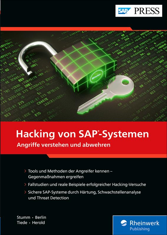 Schützen Sie Ihre SAP-Systeme vor Hacking-Angriffen! Dieses Buch zeigt Ihnen, mit welchen Tools und Methoden Hacker vorgehen und wie Sie Schwachstellen erkennen und beheben. Anhand von Fallstudien und praktischen Beispielen lernen Sie typische Angriffsszenarien kennen – auf Netzwerk, Passwörter und RFC-Schnittstellen bis hin zu ABAP-Code, SAP HANA und Cloud-Anwendungen. Erfahren Sie, wie Sie Ihre Systeme durch Härtung, Schwachstellenanalyse und Threat Detection absichern.