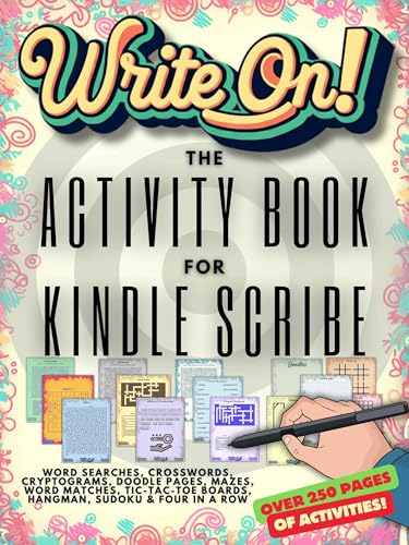 Puzzle 30 Varied Crossword Puzzles to test your vocabulary and wit - including American, British and Vocabulary style puzzles.10 Cryptograms to crack and decipher secret messages and inspirational quotes50 Challenging Mazes to navigate with your digital stylus, in multiple shapes.36 pages of Sudoku to exercise your logic skills and ability to manipulate numbers.Over 100 Word Matches to connect a variety of topical connections.50 Word Searches with over 1750 words to search for, discover, and exploreGame Time!40 Boards of Tic-Tac-Toe for quick and classic fun28 Games of Four in a Row for strategic battles14 pages of Dots & Boxes to connect and conquer14 Hangman Game Pages10 Doodle Pages to let your creativity run wild Interactive & Seamlessly navigate between activities using the Kindle Scribe's intuitive buttonsDoodle, solve, erase, and try again – all on your device!Answers are included, so you can peek or verify anything you solve.Challenge a friend to a game or enjoy solo brain-boosting fun The Ultimate Activity Book Experience