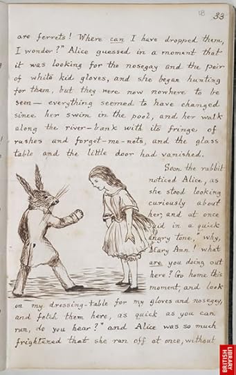 Don't get me wrong, if you take this text as the first draft that it is, then it's wonderful work. You can tell how much love and thought Carroll put into this tale. The premise is quite clever and original for its time, and it's also just nice and comforting that he came up with this tale in the first place to bemuse the real-life Alice. Also, his handwriting is so beautiful and clean, what's up with that?