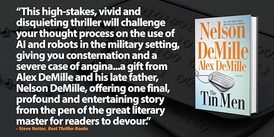 “Running along each of the two long walls was a series of bays, thirty on either side, with each bay holding what could only be described as a robot – seven-foot-tall metallic humanoid machines with two arms, two legs, large torsos, and bucket-shaped heads.”
