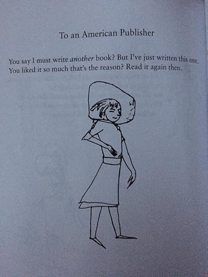 It's not that I dislike her disdainful and sarcastic view of humanity. But perhaps she should have written...I don't know, plays? essays? or actually her drawings are quite nice...she might have done much better as a cartoonist. As a poet--just doesn't work for me. The rhythm and rhyme are both clunky, for one. And it's not really that amusing or clever.