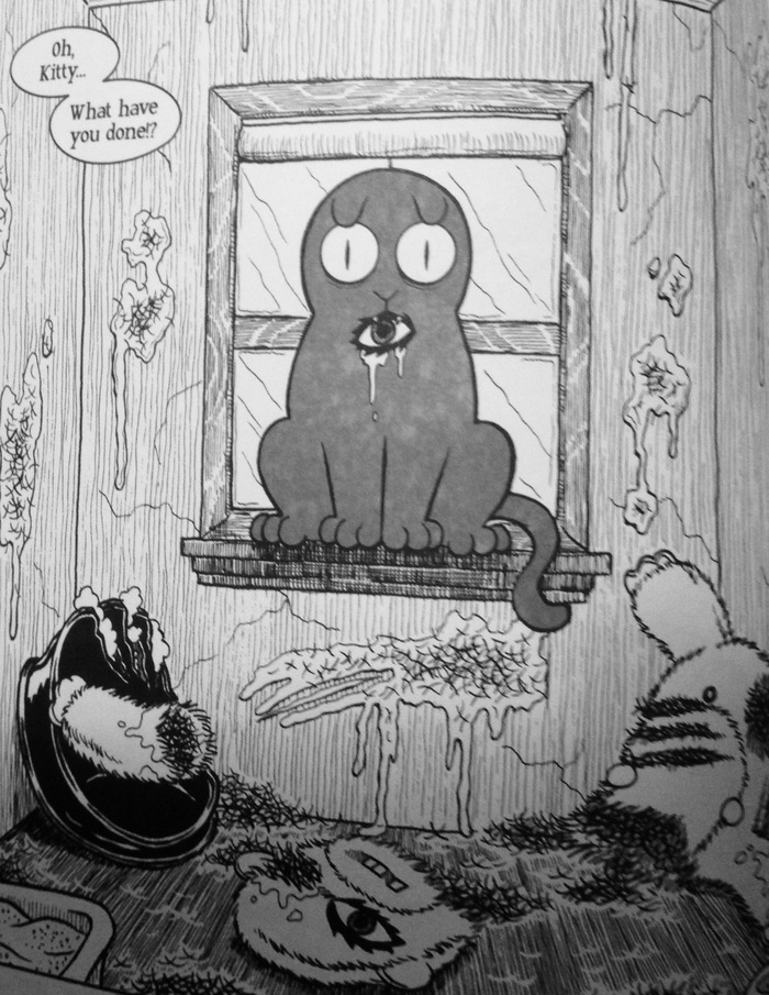 The black and white (and once, pink) artwork is lovely and mixes the crazy illustrations of Oaf and other characters among cute kitties and some really wild and creatively bizarre creatures and nightmarish visions. It's just unlike anything else you will read.