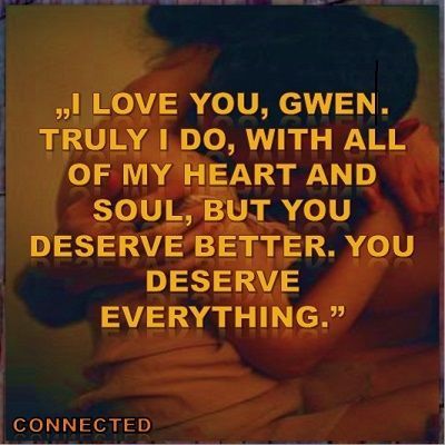 Instead of being loved back like Gwen said she did, then didn't, then did again, then didn't once again, then realizing she was wrong again, she loved him again in her very strange, hurtful way. She used his abuse against him on several occasions and that in my eyes is deplorable. I don't tolerate actions like that and that ended my likeness for Gwen real quick.