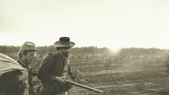 For starters, he becomes involved in a Civil War battle reenactment with an absolute purist, bent on living the era, dealing with conditions approximate to those a Confederate or Union soldier might have had to deal with, adopting the uniform, jargon & even temperament of a battle-weary soldier at the time of the Civil War, even including the precise stitching technique that would have been used to sew on a uniform button at that time & place.