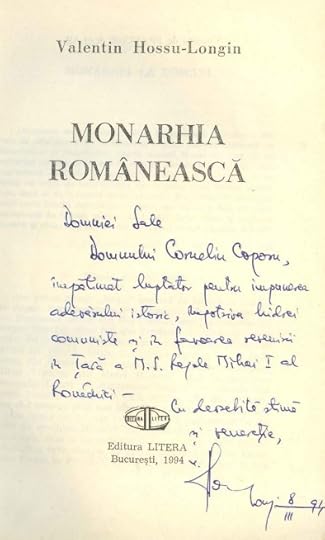 Abia târziu am realizat că Valentin Hossu-Longin a fost soţul Luciei Hossu-Longin, autoarea Memorialului Durerii şi contribuitoare asupra Memorialului de la Sighet. Cartea îşi propune în viziunea mea să ajute poate la o reabilitare a instituţiei coroanei şi figurii Regelui Mihai I în faţa tuturor românilor.