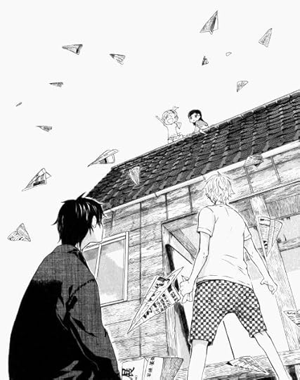 I find it hard to believe anyone could be both so mannerless as to show up uninvited at the home of a person he'd beaten for a prize to gloat about AND so clueless as to expect to be put up for the night, but come to think of it I have experienced behavior almost that rude. I guess I'm just used to characters in Japanese fiction being more concerned with politeness! And I did find it touching how the local kids tried to keep them apart (with bugs!) so Handa's pride wouldn't be wounded.