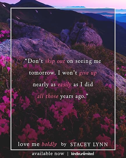 Love Me Boldly Author- Stacey Lynn Series- Deer Creek Book #2 (Standalone) Rating- 4.5 Stars out of 5 Genres- Contemporary Romance Tropes- Slow Burn, Single Mom, Second Chance, Star Crossed, Small Town Main Characters- Holly and Graham Spice Level- 1/5 HEA Content Warning- Substance Abuse (Parents)