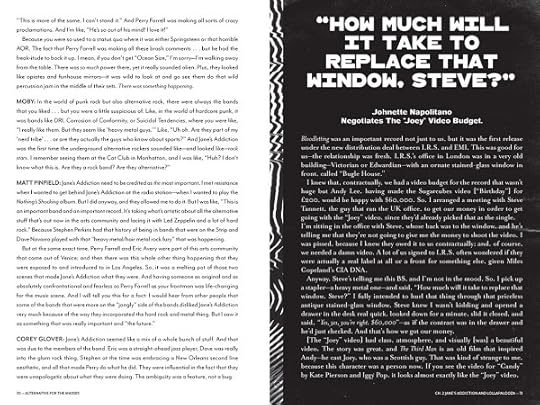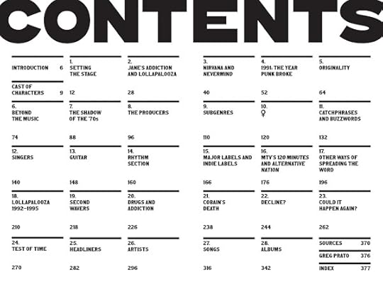 I think a big disclaimer for this book is the format. This isn't a typical book in the sense that it doesn't read like a story. Each chapter is divided into statements by various bands and producers of the '90s alt-rock scene, commenting on various topics. I think I would have enjoyed this book more if I had gone into it knowing it was going to be in this format.