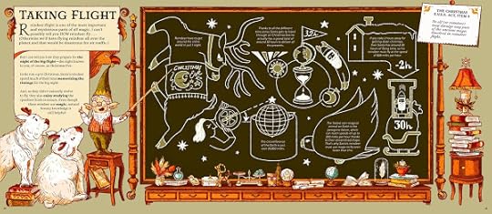 The book also introduces the Christmas E.V.E.S. Act, signed by all elves to protect Santa’s secrets, as well as the many elf jobs and the inner workings of the North Pole workshop. Presented in a larger landscape format, it makes excellent use of double-page spreads filled with charming illustrations in muted colours reminiscent of old books and secret documents written on parchment.