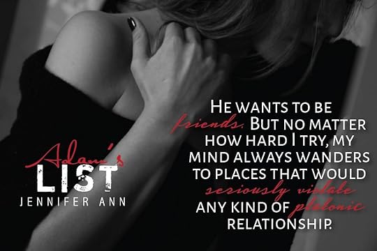 Adam's List is the first book by new Adult Romance Novelist Jennifer Ann and it delivers in the romance department!