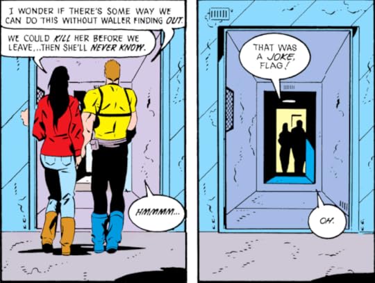 What a shame. I feel like the creative staff had really gotten a handle on the characterization and tone they wanted to go with for the series, and it could have been really good. Unfortunately, it got snared in crossovers (something about Manhunters, I don't even know) and team-ups (Suicide Squad, which ok) and couldn't really be its own book. That said, reading the characters reacting to the events is still quite entertaining.