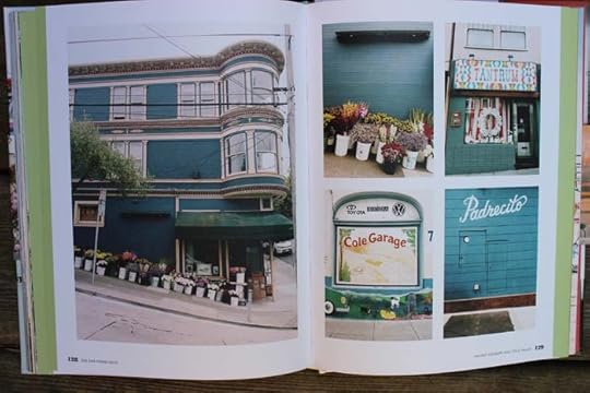 I found it puzzling that her photos do not depict any people. The photos, after you read just a few sections, can be categorised as follows: signage, Victorian houses, shop interiors, cafe chairs, and flowers. I think all the photos have a filter applied. So, it's an Instagrammy read but I'm not sure what the collection of photos say about the real SF. /shrug