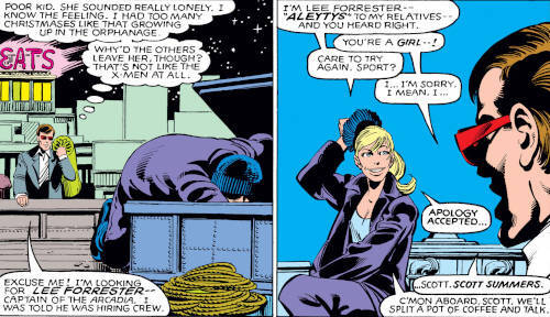 The ultimate failure, however, was in his attempt to say that Kitty Pryde views Logan and Scott with the same measure of respect. N-O. Logan means even more to Kitty than Professor Xavier. Scott certainly isn't her father figure or her role model, and probably doesn't even make the girl's list of top ten X-Men.