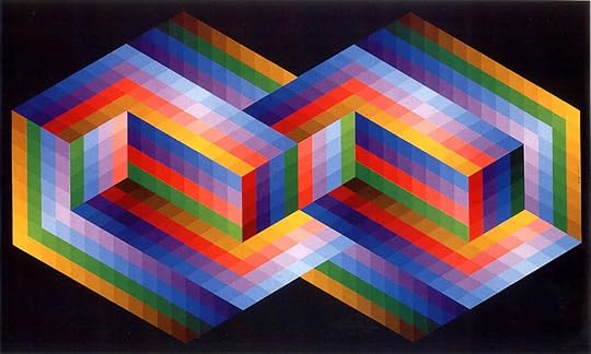 I recall viewing an exhibition of Vasarely art and sculpture at the Philadelphia Museum of Art some years back. I didn't want to leave. The combinations of colors and forms were so powerful and magnetic my eyes couldn't get enough Here are my brief comments on works from two prints in the book: