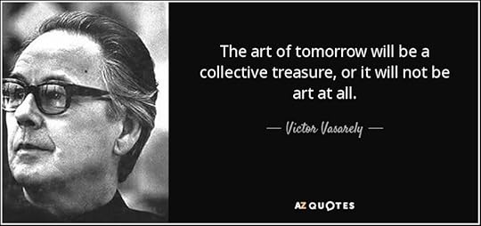 From my own experience, this is what I see when looking at Vasarely's geometrical shapes: purity and rhythm and balance as the clear forms and vivid colors seem to play with one another; it is as if I am transported to a completely free, completely open, non-temporal visual realm. If this sounds mystical, there’s good reason, it is mystical. As Diehl explains, Valarely engaged in "transformation of the external vision into an internal vision".
