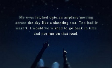 Darkness surrounded me as I sat down on the dented metal. With my feet on the road, I twisted toward the ocean. The coastal breeze whipped my hair around as the waves crashed on the shore, violent and destructive, much like my mind.