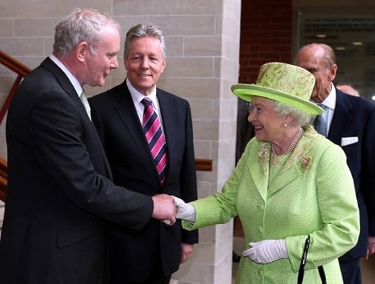 For me this handshake is an emotional thing. You probably know I'm not any kind of royalist. But here's a woman shaking hands with a guy who would have killed her and her family if he had the chance only a few years ago. I think it's really quite wonderful. You really can beat swords into ploughshares sometimes.