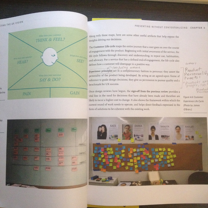 - paid EUR 8 (shipping included, good used condition), not EUR 35 - my rating: 3/5 stars at 35 euros and 4 stars at 8 euros - could have been half the pages - mixed bag of no-brainers and useful tips, sometimes redundant - some photos and illustrations, glossary - content is organized around 13 bad habits and manners of thinking in UXD stakeholder communication, each described with indicators, countermeasures, and a 2-3 page real-world anecdote from an UXer, which isn't just decoration - the authors make "the case that what we design isn't an experience until a user is experiencing it", and provide "better interpersonal patterns and ways to keep discussions on track" and "how to harness testing and user feedback to tighten feedback loops and make better product decisions as a team" (p.240), it consistently argues against silos - it's not a book about the subtleties of front-end, user research, strategy, product definition, information architecture, interaction design, visual design, branding, ... - text was printed too close to the fold throughout the book, but makes the outer margin wider so that you can write more notes there