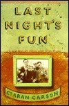 Last Night's Fun is a collection of memoirs/essays about Irish folk music, smoking while playing Irish folk music and after, drinking while playing Irish folk music and before and after, eating before or after playing Irish folk music, growing up in Northern Ireland in the 50s and 60s, and the general carrying-on that makes up a large portion of why people get up out of bed. Carson's descriptions are precise and vivid, and he gets at some of the power of folk music as a river of expression that is never finished, never correct (though it certainly can be played wrongly), and which flows only through the people who play it and teach it to one another.