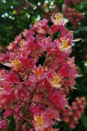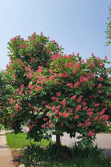 Postscript: I have lived in Denver for almost 25 years, and am a home visiting nurse, so I get to go to ever nook and cranny of it, but imagine my surprise for the first time ever, to encounter a brilliantly blooming tree like the red horse chestnut randomly across the street from a public library in a fairly impoverished neighborhood. I got all the feels, all the awe, couldn’t talk or move standing under this tree resplendent with pink and red candles and I swear I could see like a bee, I saw glitter, twinkle, glow standing there. I took photos, I wrote a poem with it in it, I associate it with a baby in my care who had been diagnosed as blind, it is connected to me now. I felt moved by the tree, manipulated to feel awe so I could protect it, and hope that others can do so also, this is what we need in our world we are killing. A few shots from that moment: