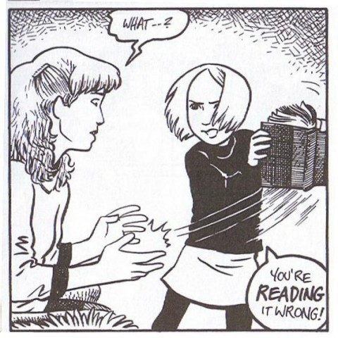 I thought of that blog and the ridiculous message it was sending (that opinions of books are only "valid" in certain circumstances) after finishing this little graphic novel.
