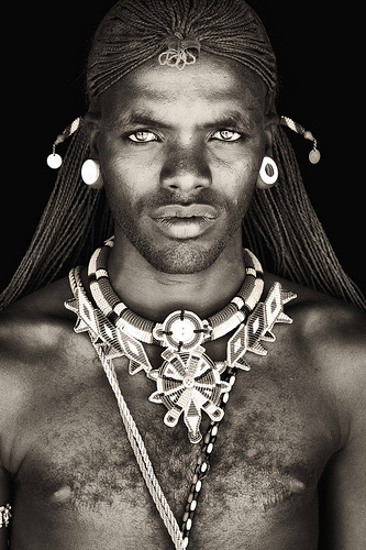 Photo Description: A handsome African tribesman stares straight at the camera with light-coloured eyes, fierce, smouldering, and intense. Long, thin, braids hang down his back, and his ears and neck are adorned with tribal jewellery. Lush lips form a slight pout and dark stubble shadows his jaw. The second man is tall, broad-shouldered and muscled— he sure looks capable of fulfilling the dark needs in the first man’s eyes.