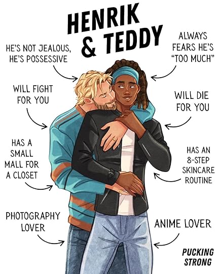 Ooh this book has my heart! Teddy and Hedrick are the absolute cutest couple. Teddy’s anxious thoughts and spirals were so relatable and had me laughing, while Henrik’s guarded stoic nature made my heart swell when he finally let himself feel love. Their romance was a slow burn that felt so natural to who they are and when it ignited it was pure fire 🥵