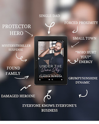 Under The Same Sky is book two in the Timberbridge Brothers series by Claudia Burgoa. We are back in the small town of Birchwood Springs for this romantic suspense between Hopper Timberbridge and Nysa Calloway. This is a slow burn romance where he falls first but they both have issues to work through so it gets very emotional at times. Hopper is an extremely protective hero with an adorable daughter and Nysa shows such strength to overcome everything. Many twists and turns in their relationship, the drama affecting the town and the brotherly feud.