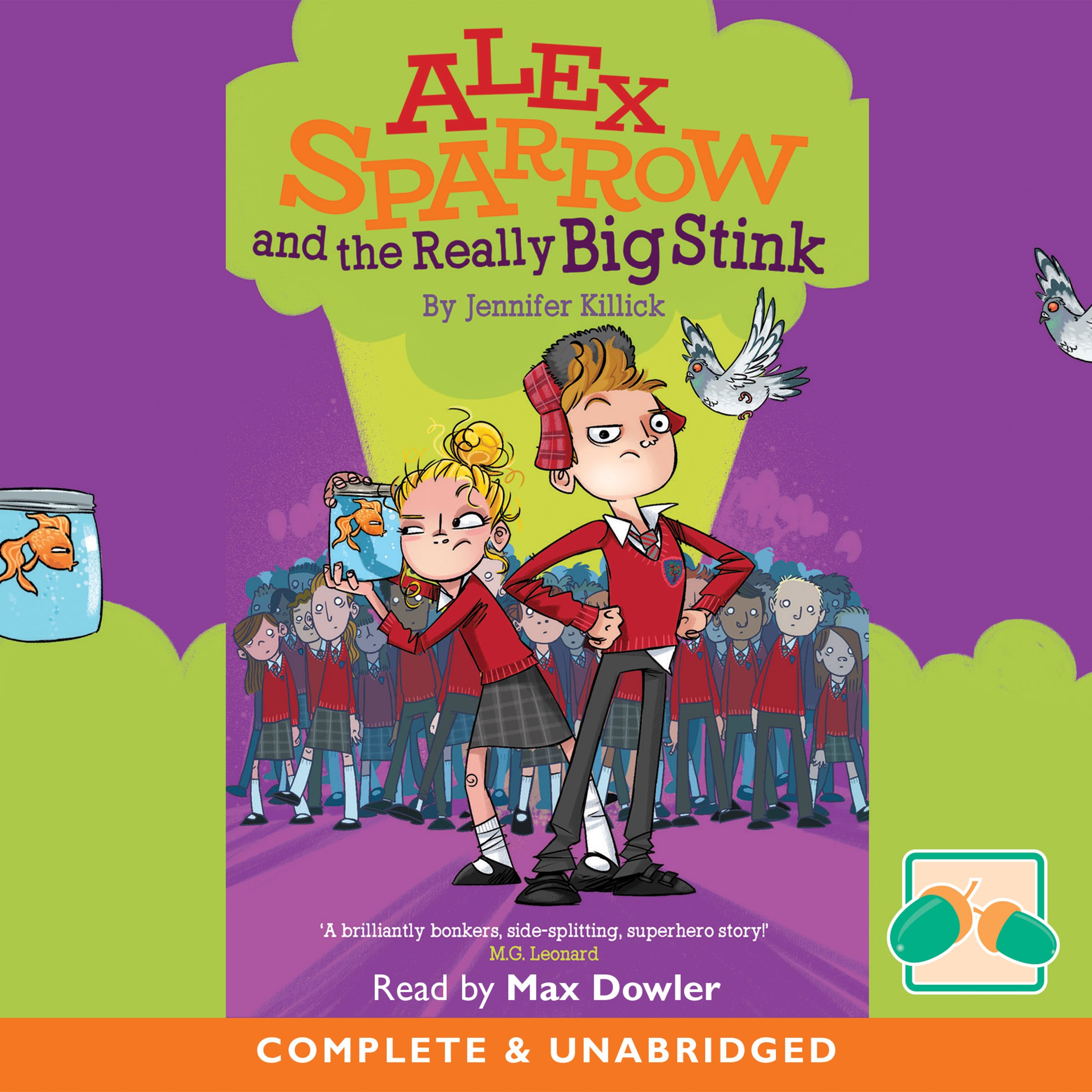 With the help of his sarcastic sidekick, Jess, a pigeon and a goldfish, Alex sets out on an action-packed, mysterious story that will take him into the heart of weird mind-control, secret identities and condescending goldfish.