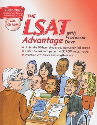 The LSAT Advantage with Professor Dave 1. Coverage for the New Comparative Passages Question-Type. 2. Thorough exposure to the Law School Admission Test through pretesting and post-testing with similar exam questions and timed practice sets. 3. Insightful presentations and helpful exercises that aid students in strengthening their command of specific subject areas. 4. A CD-ROM containing 25 voice tracks three full-length exams with answers and complete explanations, an Analytical Reasoning Primer, plus an extensive Tips and Tricks section for the final review. Unique features The Professor Dave image which serves to motivate and inspire students as he simulates the classroom experience with his students. The useful dialogues featured in the text between teacher and student help to engage the students and quell test anxiety. What is lacking in commercial test prep materials is a personalized, instructor-led, learning experience. 1. Learning at the knee of the master is the best pedagogy for learning difficult material. 2. Students everywhere share the common experience of in-classroom learning with an experienced, enthusiastic instructor. 3. The focus groups choose Professor Dave, from other icons, as a friendly, familiar face with whom they felt comfortable and confident he would help. Use of Comic Sans as a dialogue font while retaining Times (the exam font) for the academic material. Voice tracks by Professor Dave that, in addition to the academic material, focus 1. The law school application process 2. The law school experience 3. Careers in law The voice tracks provide information that cannot be found elsewhere. The CD-ROM also houses additional study material that brings the total coverage to 750 pages the largest LSAT book on the market. Motivational, humorous, educational quotes that are positioned throughout the book. You ll find the review experience to be unique and comprehensive.