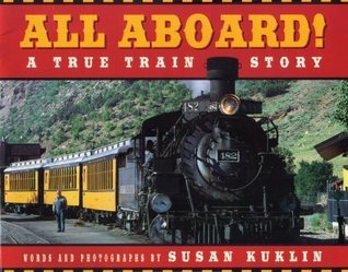 All Aboard!: A True Train Story by Susan Kuklin highlights a trip on a steam engine of the historic Durango & Silverton Railroad. Kuklin's photographs capture details of the steam train journey and experience that train enthusiasts young (and old) will love. My favorite images are the cover, fire blazing, over the trestle, up the mountain, and smoke swirls.
