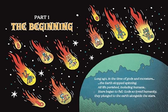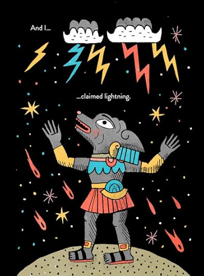 It's a long one, by page count; it isn't a text-forward read, though. It occupies a middle ground I didn't realize existed, long page count made up of a narrative told in sequential graphic art but with some text. It's a step between a picture book and a graphic novel, aimed squarely at the reluctant reader with its very interesting untold mythological tale of gods and lightning.