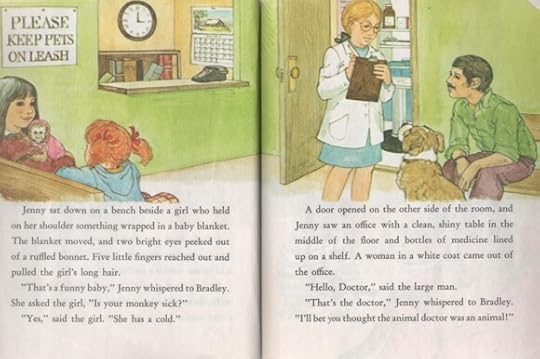I was surprised that, in this children's story, the vet yells at the patients in the waiting room. It doesn't seem to set a very good example for a child bringing their animal companion for a check up for the first time. I think this book was written in the 70s, but I'm glad I never read this to my children.