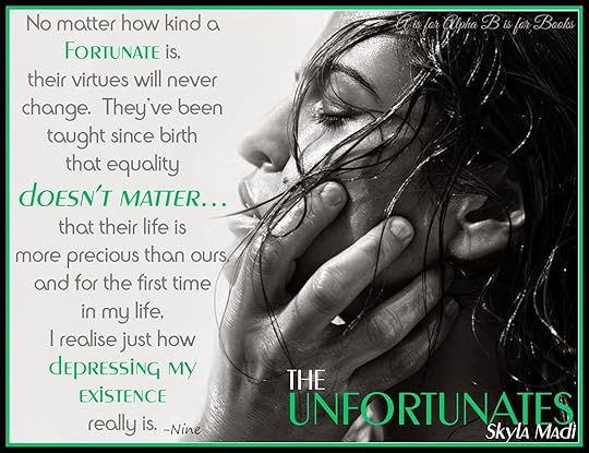 There are a few authors out there who could tell me they're writing a new novel about the joys of shit-scrubbing and I'd gear up to read it. Fortunately none of the authors I love tend to write about shit-scrubbing, so that doesn't come up much. Either way, Skyla Madi is one of them. There was a sneak-peak of The Unfortunates at the end of Forever Consumed and I was hooked right away.Kade Sario was supposed to vicious and cruel. He was supposed to be a monster, to hurt and chastise me for the smallest things... but he didn't. I didn't understand it... until I found out what he really wanted from me.