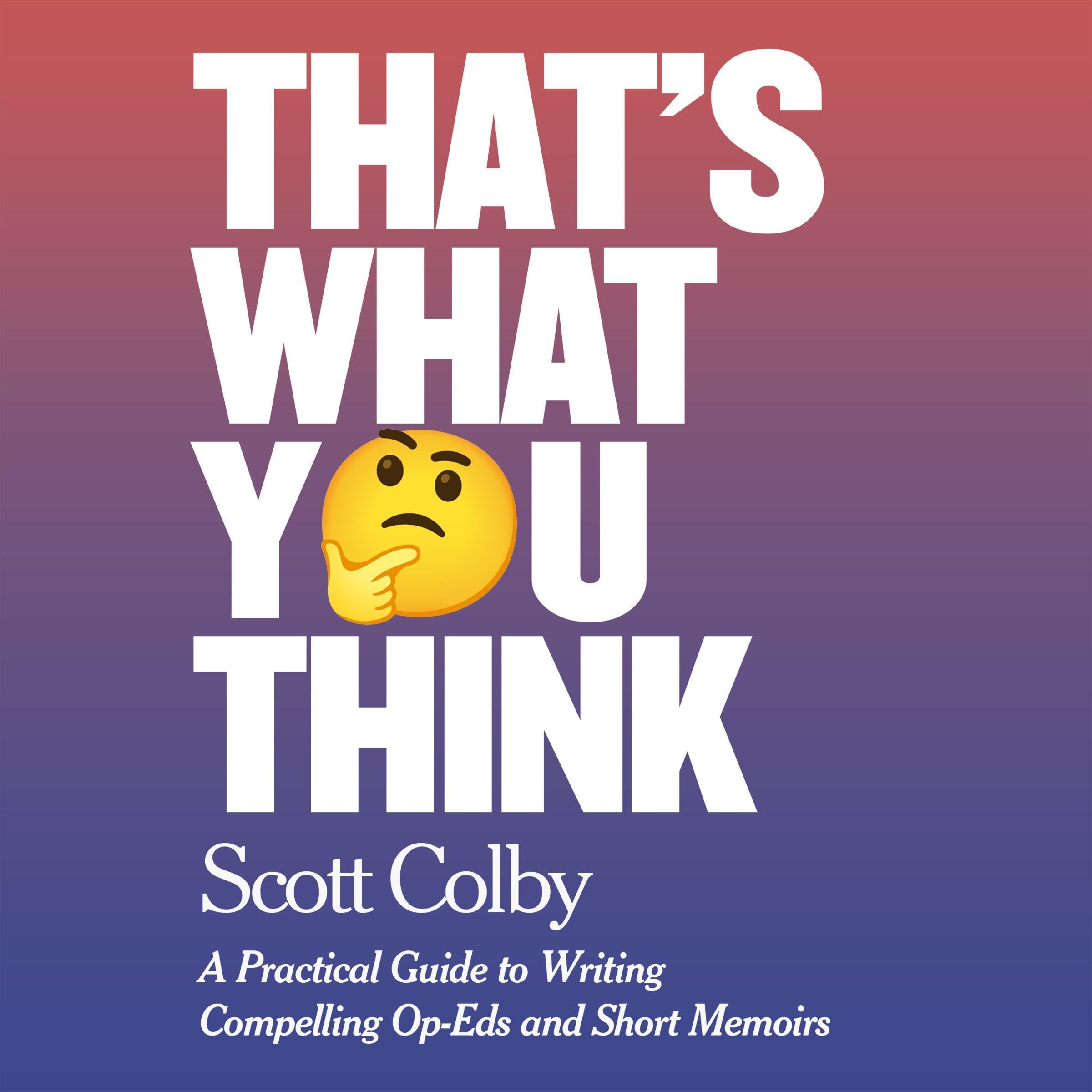 Writing persuasive opinion articles is a skill that can be learned, so Scott created this practical guide Scott to writing op-eds. In That’s What You Think, Scott explains the importance of op-eds, how to express opinions effectively so readers will listen, how the process works at news organizations and how not to alienate the editors you want to impress. Scott also stresses that in today's political climate, not everyone will agree with your opinion or want to hear your opinion, so writers must be prepared for a backlash.