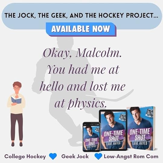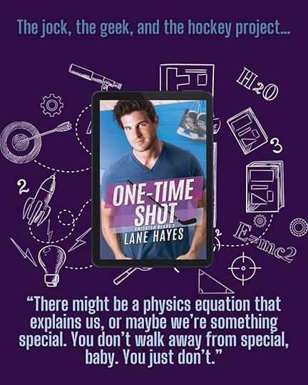 One-Time Shot is a low-angst, geek-jock MM college hockey romance featuring a charismatic hockey star and an adorkable scientist.