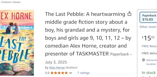 As with others reviewing this title, I was very aware of the writing style being uniquely that of Alex Horne as we see him on Taskmaster. Gently amusing, but also subversively clever, the book revolves around Trader, his Grandpa and, something very new for Trader, his friend, Charlotte. Trader is a beachcomber, like his Grandpa, and one day finds a very special pebble which sets in motion a whole series of events which change him forever. There is something very comfortingly familiar and traditional about this story, but Alex Horne is never blind to the fact that Trader does have a hard time because he is different and doesn't fit in with the others around him, nor does he allow Trader a gilded childhood, there are hiccups along the way, and, ultimately, a sad understanding that age does catch up with us all. Do I think a little of the boy Alex Horne was is in Trader? I am sure there is and that perhaps is why Trader, as a narrator feels so authentic. I will recommend this title to several of the children I work with as a librarian and very much enjoyed my e arc supplied by Walker Books and NetGalley.