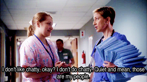 Sam, a new nurse who is a quiet introvert in a world that nurses sometimes "eat their own." --I hate that this happens but it honestly does. New nurses are automatically not trusted on the floor and must earn their stripes from nurses that have been doing this for years.