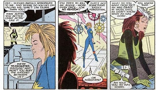 So it's pretty B-Squad. There is Psylocke (but before the cool ninja version), Dazzler (whose super power is evidently complaining about being useless), Longshot, Rogue, Havok (with a serious case of horse face) and Wolverine.